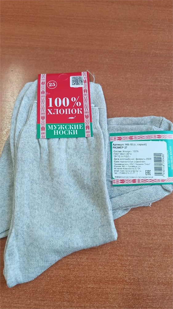 Носки м. гладкие (арт. НХ-10) с/серый, размер 25