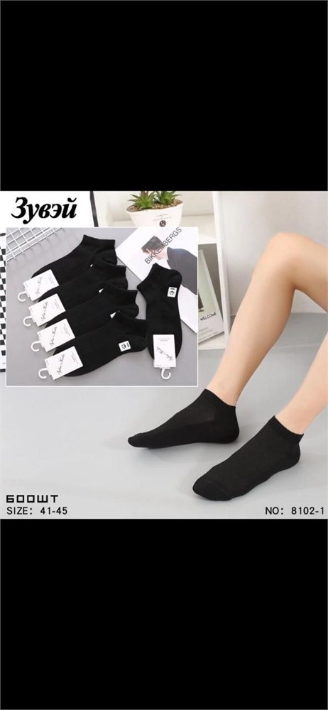 Носки муж.№8102-1 "Zuwei" черные сетка корот х/б 10шт/уп