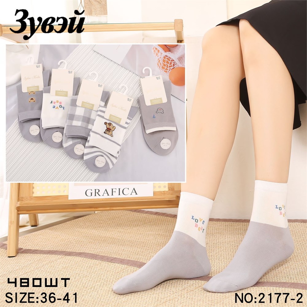 Носки жен.№2177-2 "ZuWei" средние х/б 10шт/уп