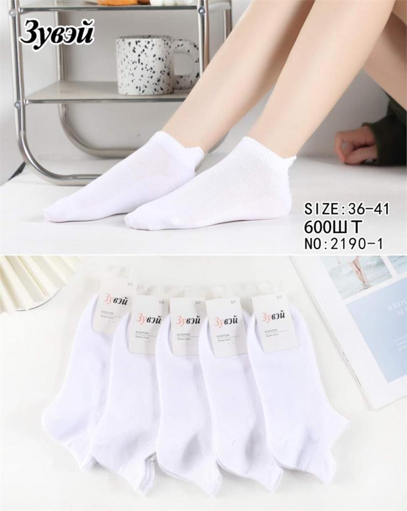Носки жен.№2190-1 "Zuwei" х/б белый короткие сетка 10шт/уп