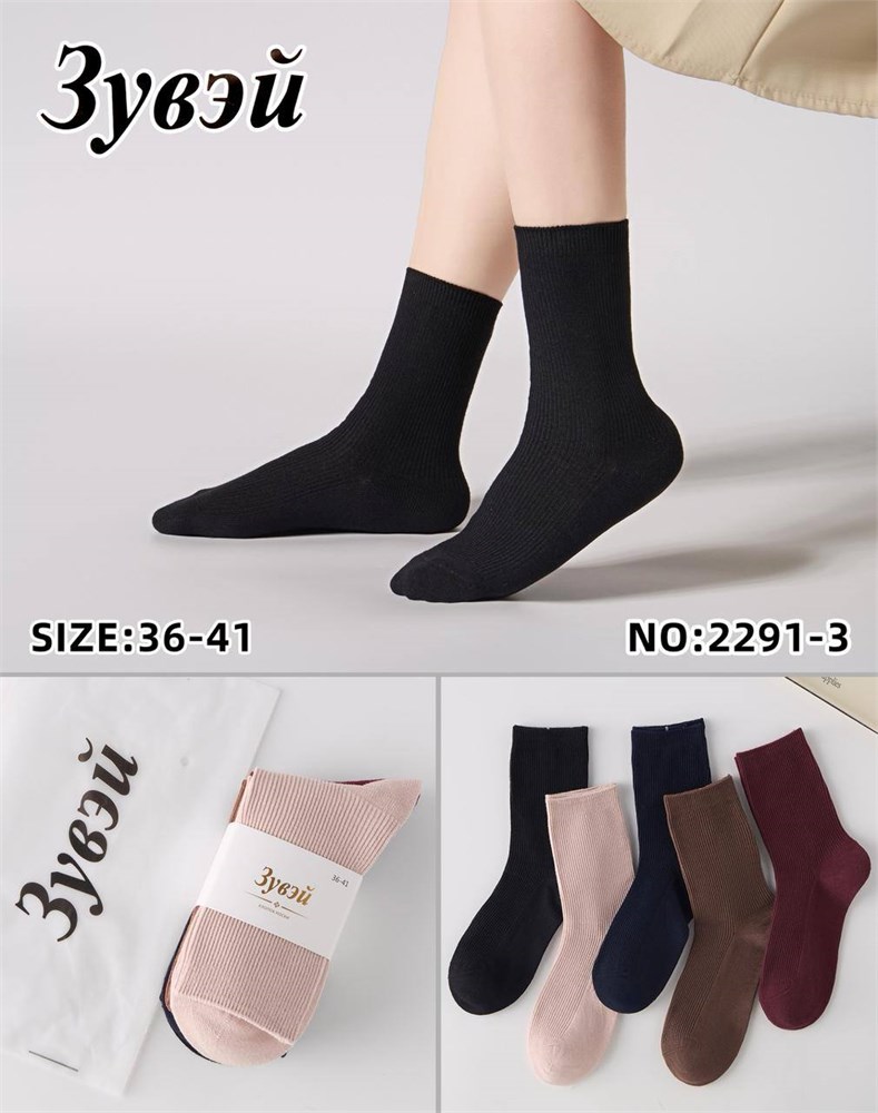 Носки жен.№2291-3 "ZuWei" х/б средние 5шт/уп