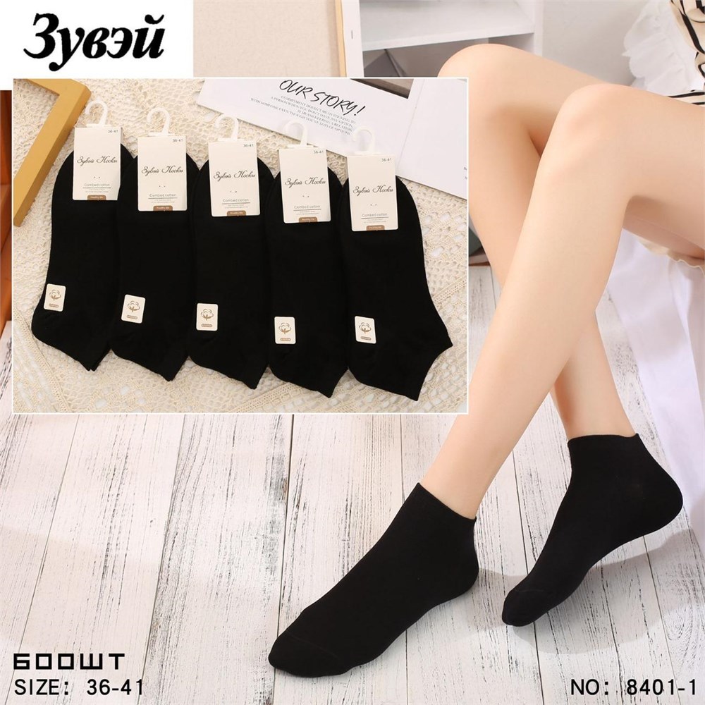 Носки жен.№8401-1 "Zuwei" черные корот х/б 10шт/уп