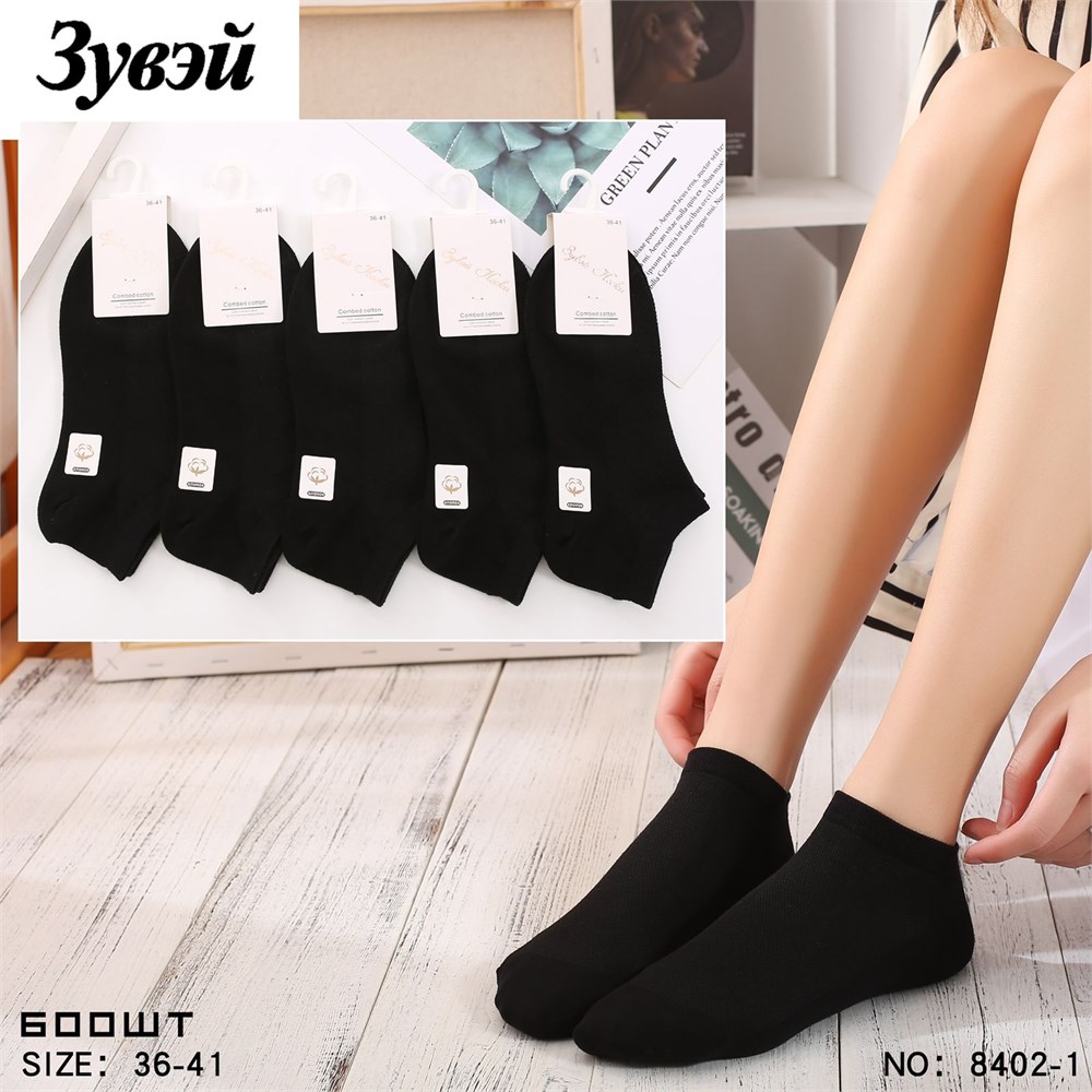 Носки жен.№8402-1 "Zuwei" черные корот х/б сетка 10шт/уп