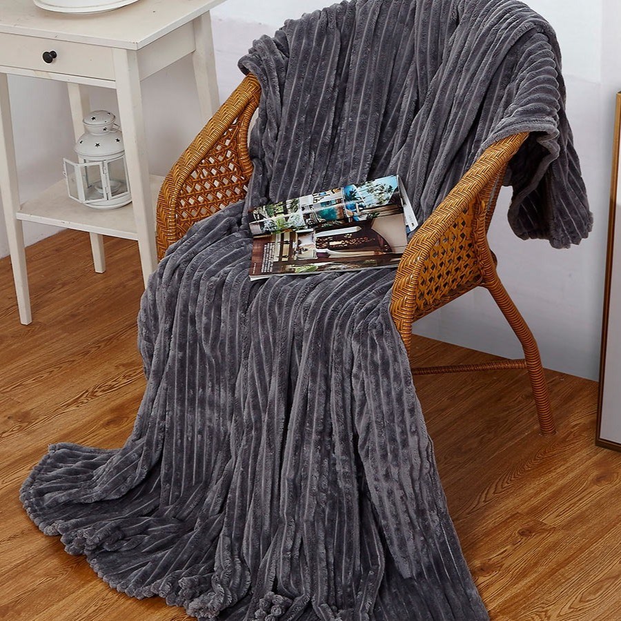 Плед Эльза велсофт полоса 150х200 см. графитовый
