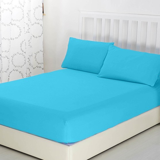 Простыня трикот 125 гр. на рез. (140х200х20+-2см) арт. Р012Т (Голубой)